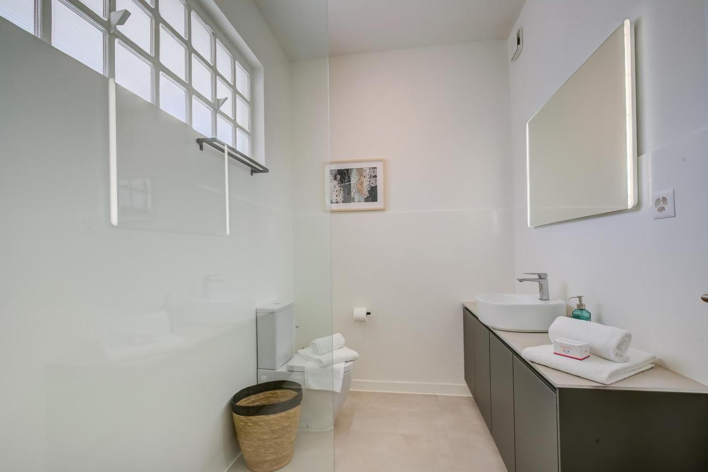 Apartment. This spacious apartment consists of 1 living room, 1 separate bedroom and 1 bathroom with a shower and a hairdryer. The well-equipped kitchen has a stovetop, a refrigerator, a dishwasher and kitchenware. This apartment is air-conditioned and features a seating area with a flat-screen TV, a washing machine, a coffee machine, a dining area, as well as a wardrobe. The unit offers 2 beds.