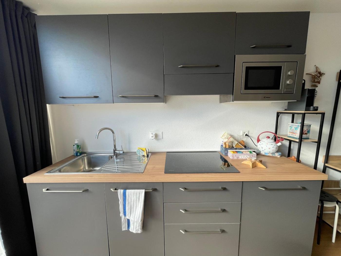 One-Bedroom Apartment. Featuring a private entrance, this air-conditioned apartment is comprised of 1 living room, 1 separate bedroom and 1 bathroom with a shower and a hairdryer. Guests will find a stovetop, a refrigerator, a dishwasher and kitchenware in the fully equipped kitchen. The apartment also has a barbecue. Boasting a terrace with garden views, this apartment also offers a tea and coffee maker and a flat-screen TV. The unit offers 2 beds.