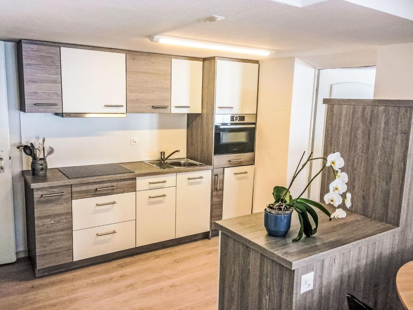 Apartment. This apartment offers a fireplace. This apartment comprises 1 bedroom, kitchen, a terrace and 1 bathroom with a shower. The well-fitted kitchen features a stovetop, a refrigerator, a dishwasher and kitchenware. The apartment provides a TV with satellite channels, a coffee machine, a dining area, heating as well as mountain views. The unit offers 2 beds.